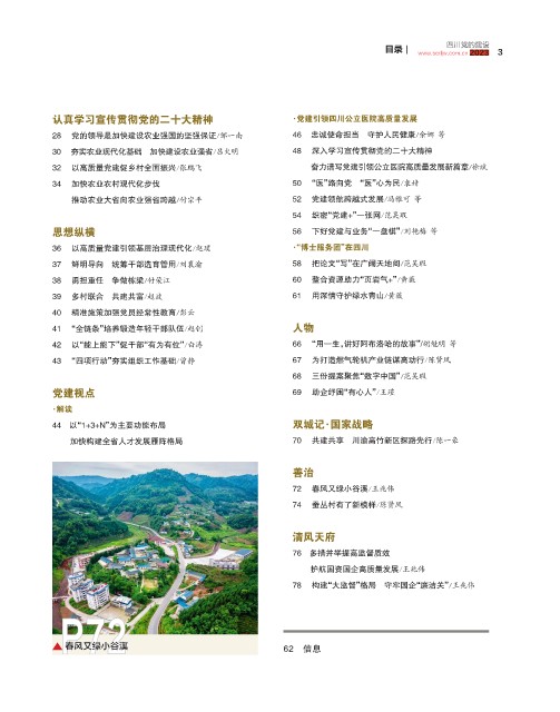 28 党的领导是加快建设农业强国的坚强保证/邹一南 46 忠诚使命担当 守护人民健康/余娜 等
