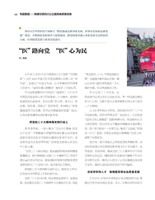 2 月 21 日,四川大学华西医院(以下简称“华西医 “喜迎党的二十大,华西奋进新征