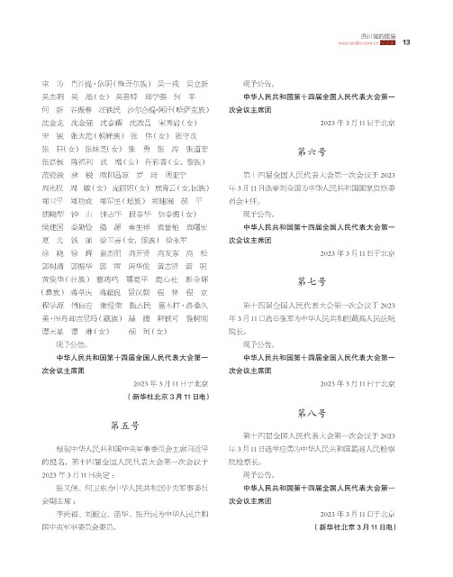 范骁骏 林 锐 欧阳昌琼 罗 琦 周亚宁 第十四届全国人民代表大会第一次会议于 2023