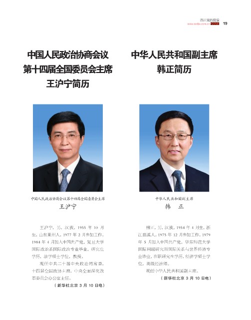 王沪宁,男,汉 族,1955 年 10 月 韩正,男,汉族,1954 年 4 月生,浙