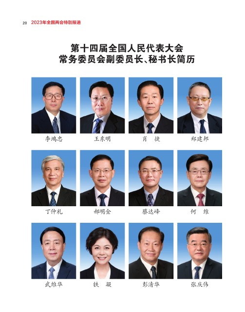 20 2023年全国两会特别报道 第十四届全国人民代表大会 常务委员会副委员长、秘书长简历 李鸿忠 王东明 肖 捷 郑建邦 丁仲礼 郝明金 蔡达峰 何 维 武维华 铁 凝 彭清华 张庆伟