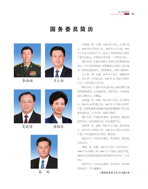 秦 刚 (新华社北京 3 月 12 日电)