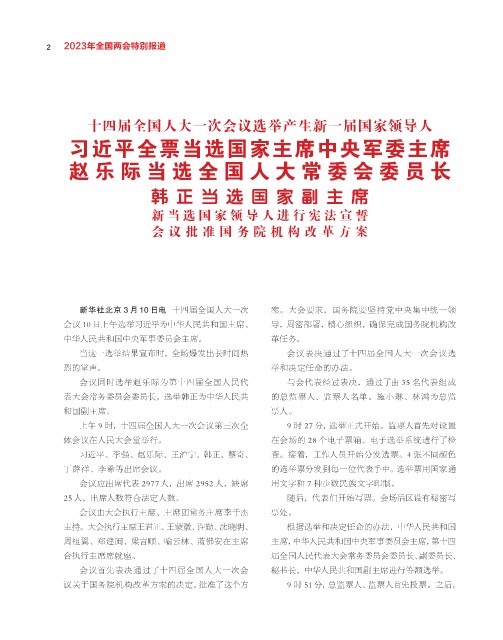 会议同时选举赵乐际为第十四届全国人民代 与会代表经过表决,通过了由 35 名代表组成