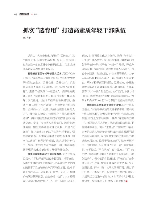 通渠道,健全党委常态化推优机制,组建“致 衡照顾等观念,突出“重基层”“重实绩”导向,