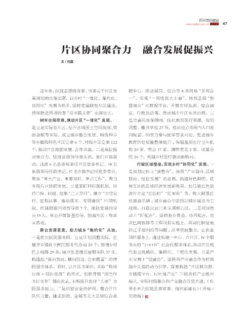 动,选派 6 名县委常委任片区党委书记、18 名 打破区域壁垒,实现乡村“协同化”发展。 一