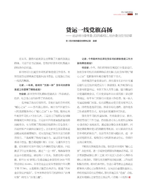 记者:一年来,彭州市“五维一体”货车司机群体 运输行业党组织规范运行十条措施》,配齐配强行业