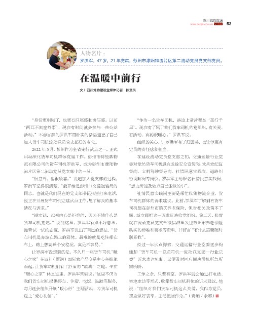 让罗洪军没想到的是,不久后一座货车司机“暖 建起“货车司机—党员司机—流动党支部—行业党