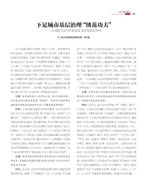 府联系群众、服务群众的神经末梢。近年来,成都市金牛 系建设,科学设置小区(网格)党组织1116个,通过“社区