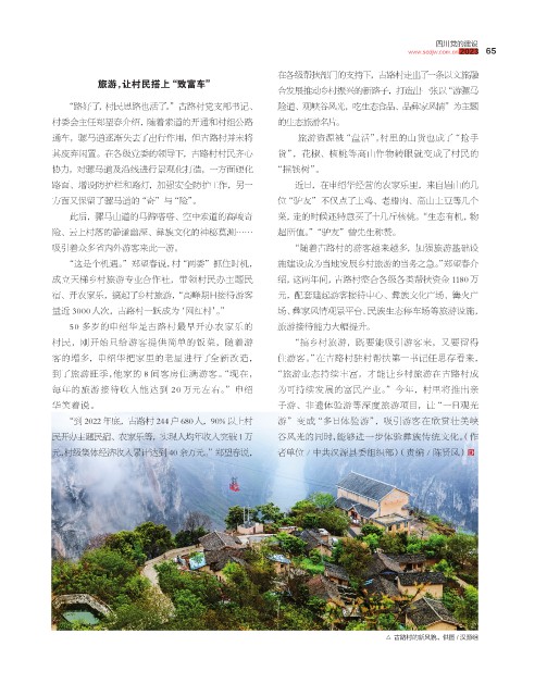 “到 2022 年底,古路村 244 户 680人,90% 以上村 游”变成“多日体验游”,吸引游客在欣赏壮美峡