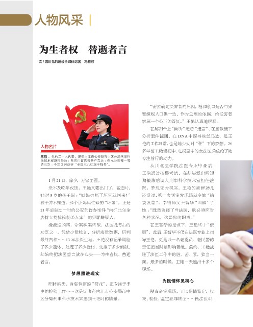 功三次 ;今年 3 月获评“全国三八红旗手标兵”。 从 川 北 医学 院 法 医专 业毕 业 后,