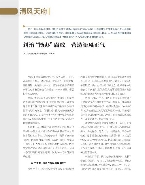 近日,省纪委监委印发《四川省领导干部操办婚丧喜庆事宜的规定》,要求领导干部带头执行党中央和省