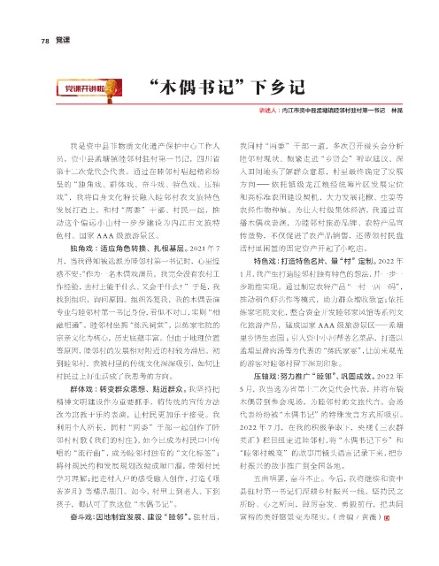 动 这个 偏 远 小山 村一步 步 建 设 为内江 市 文旅特 播木偶戏表演,为睦邻村旅游品牌、农特产品宣