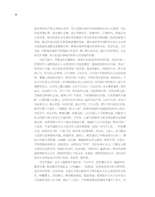 效。要凝心铸魂筑牢根本,教育引导广大党员、干部经受思想淬炼、精神洗礼,坚
