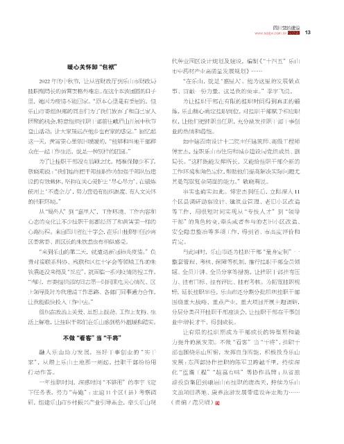 融 入 乐山助力发 展,当好 干事创 业的“实干 部也围绕乐山所需,发挥自身所能,积极投身乐山