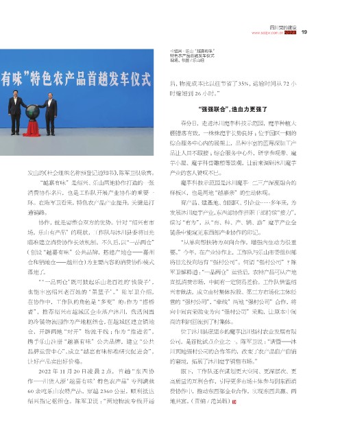 仓,开辟两地“对开”物流干线 ;作为“推进者”, 位于沐川县底堡乡的魔芋出川强村农业发展有限