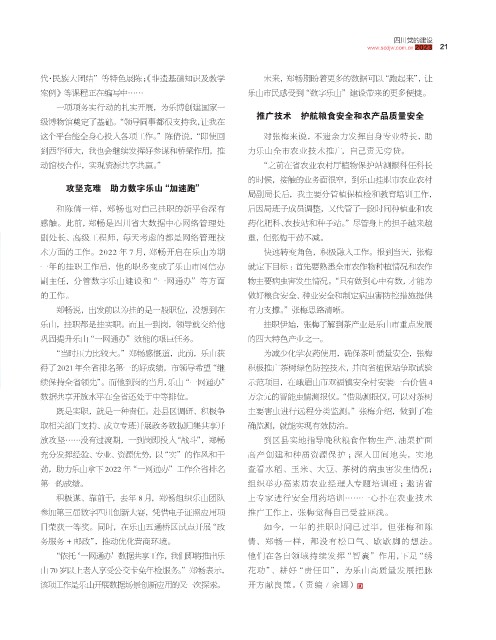 术方面的工作。2022 年 7 月,郑畅开启在乐山为期 快速转变角色,积极融入工作。报到当天,张梅