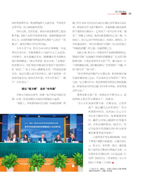 挥桥梁纽带作用,推进两地深入交流互动,寻找更多 侧,但自 2021 年乐山市与南川区建立友好城市关系以
