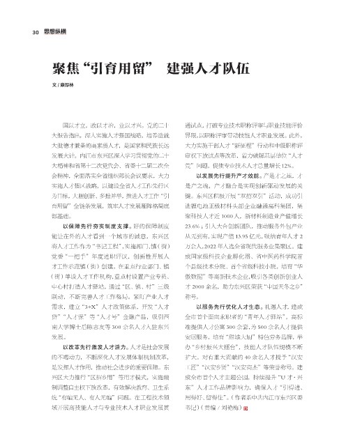 统“有编无人、有人无编”问题。在工程技术领 用得好、留得住”。(作者系中共内江市东兴区委