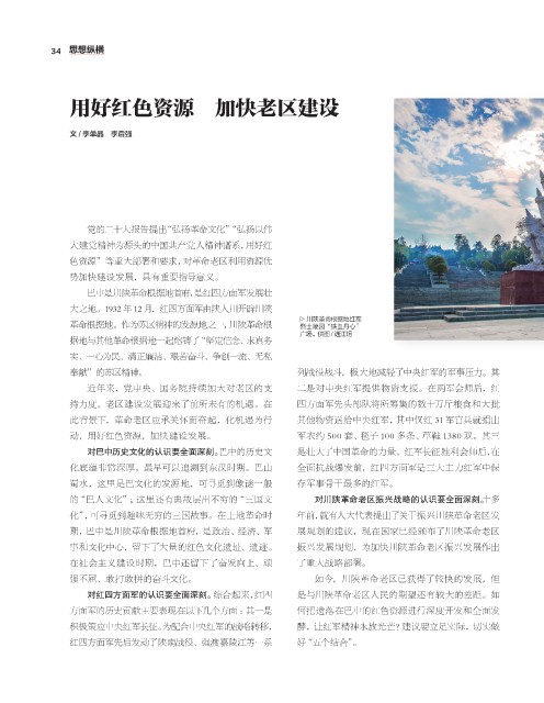 事和文化中心,留下了大量的红色文化遗址、遗迹。 振兴发展规划,为加快川陕革命老区振兴发展作出