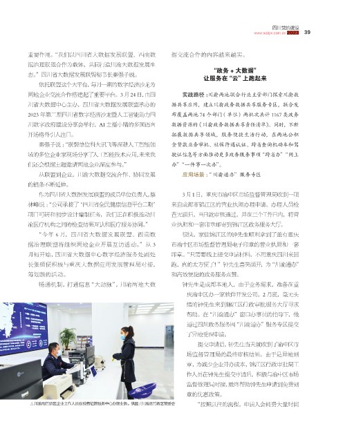 重要作用。“我们以四川省大数据发展联盟、西南数 据交流合作的内容越来越实。