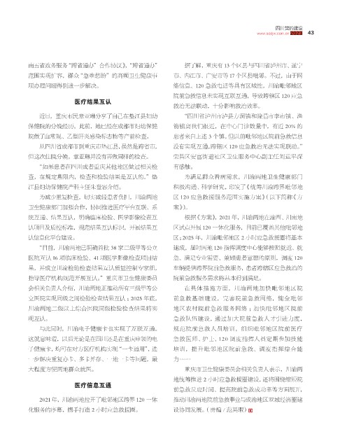 为减少重复检查,切实减轻患者负担,川渝两地 区 120 应急救援服务范围实施方案》(以下简称《方