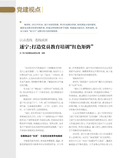 编者按:2022年以来,遂宁市深度挖掘、整合红色教育资源,依托精品示范村建设,