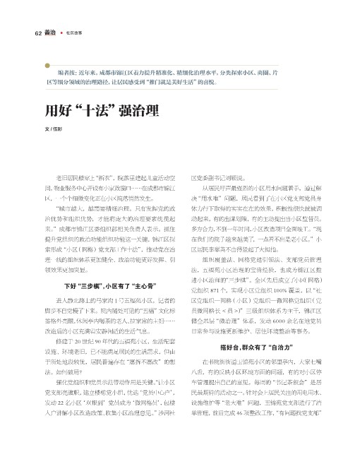治优势和组织优势,才能将庞大的治理要素统揽起 动起来,有的出谋划策,有的主动提出当小区监督员。