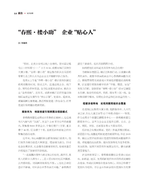 办、预约办多种渠道,全方位送服务进楼宇,解决企 发展为目标,创新探索“春熙·楼小助”楼宇党建服