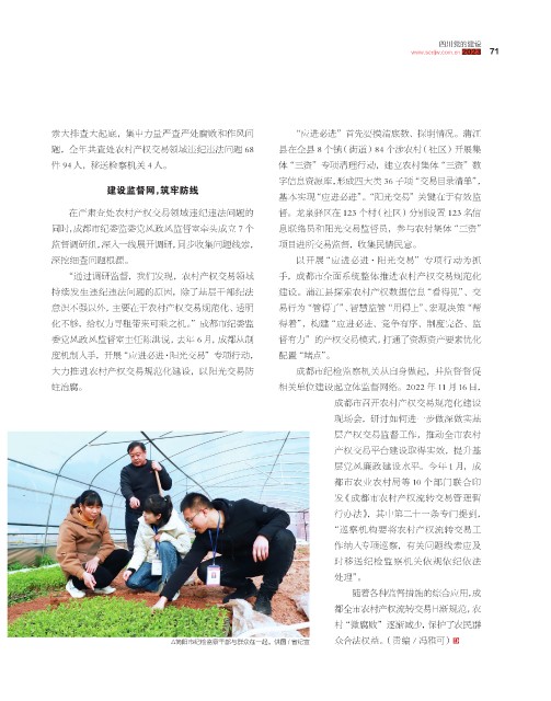 同时,成都市纪委监委党风政风监督室牵头成立 7 个 息联络员和阳光交易监督员,参与农村集体“三资”