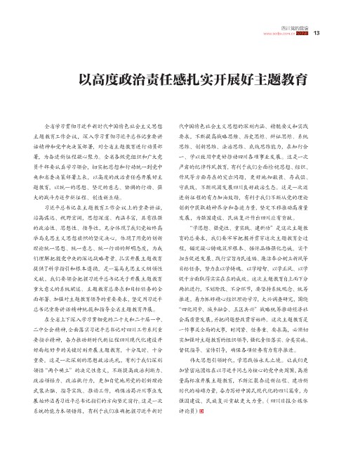 要指示精神,奋力推动新时代新征程四川现代化建设开 实加强对主题教育的组织领导,强化责任落实、分类实施、