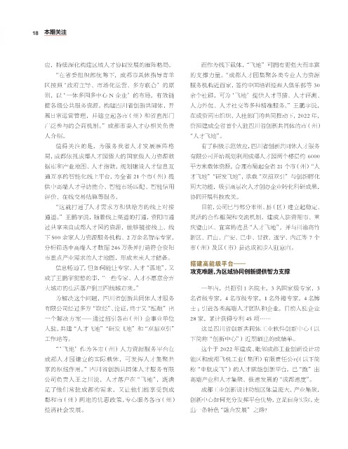 享的枢纽作用。”四川省创新共同体人才服务有限 称“中航成飞”)的人才赋能创新平台,已“跑”出