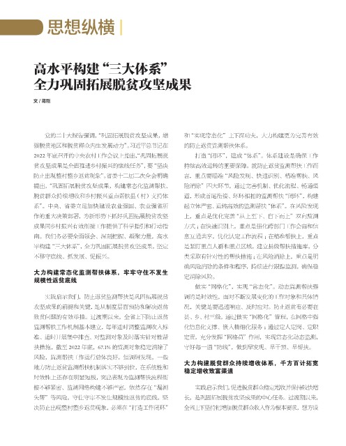 平构建“三大体系”,全力巩固拓展脱贫攻坚成果,坚定 是紧盯重点人群和重点区域,建立县级帮扶措施库,分