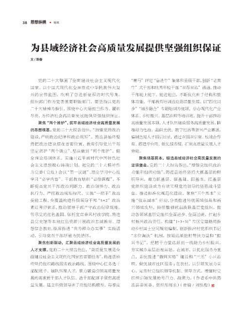 部配班子、建队伍聚人才,聚力锻造引领高质量发 心,完善村党组织领导机制、领导方式,增强村党