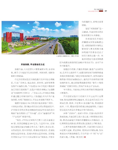 自贸区川南临港片区。供图 / 泸州组 协同开放的关键一步。两