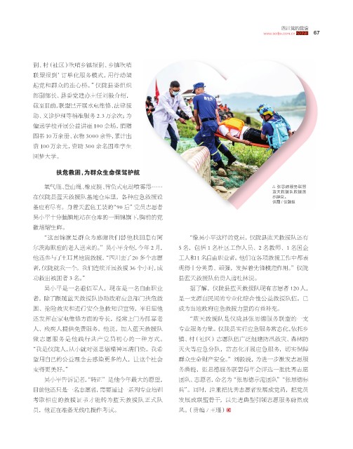 困、抢险救灾和进行安全急救知识宣传,平日里他 成为当地政府应急救援力量的有益补充。