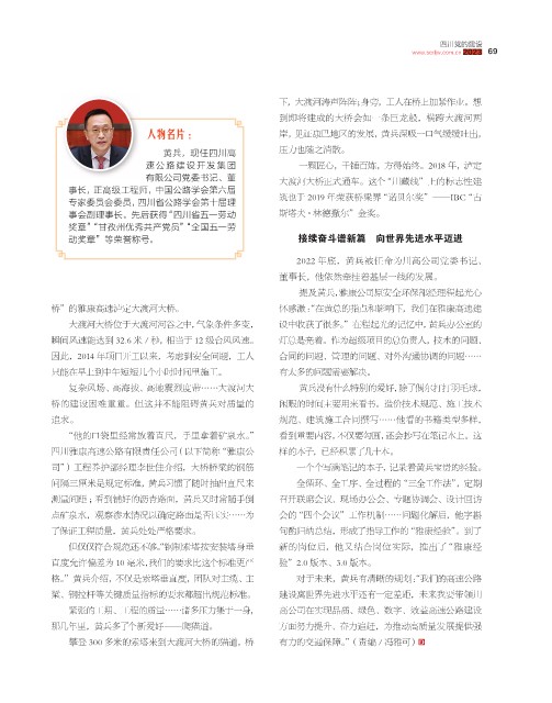 格。”黄兵介绍,不仅是索塔垂直度,团队对主缆、主 对于未来,黄兵有清晰的规划:“我们的高速公路