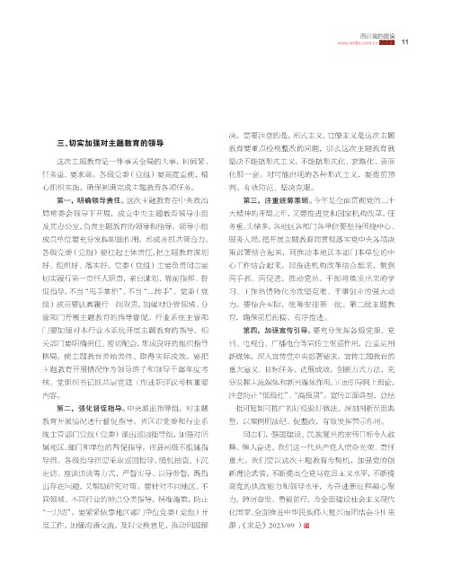 第一,明确领导责任。 这次主题教育在中央政治 第三,注重统筹兼顾。 今年是全面贯彻党的二十