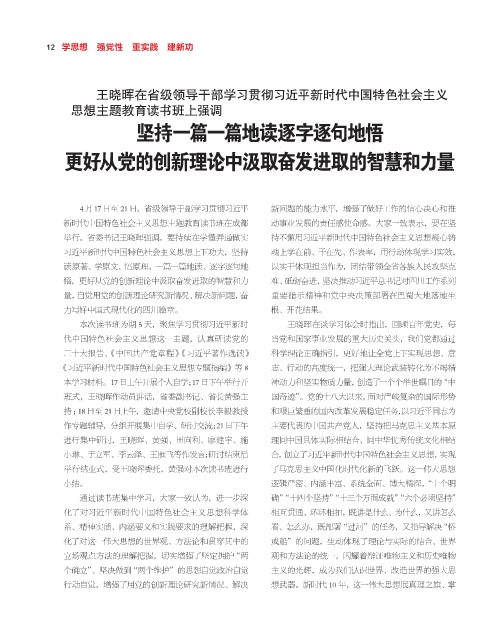 新时代中国特色社会主义思想主题教育读书班在成都 动事业发展的责任感使命感。大家一致表示,要在坚