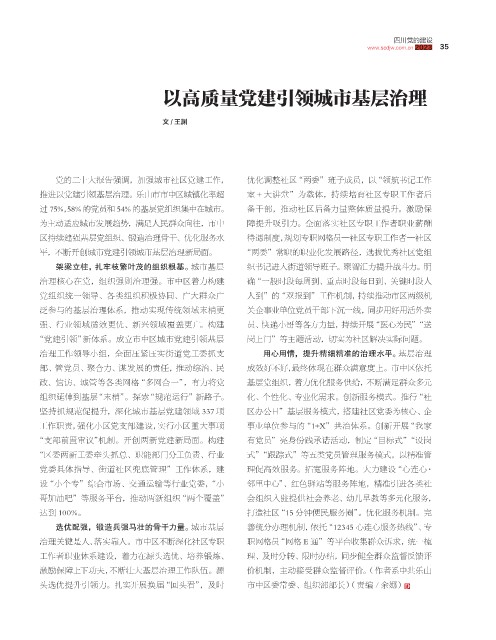 以高质量党建引领城市基层治理