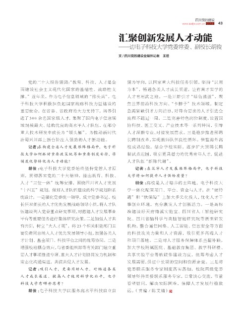 胡俊 : 电子科 技 大学党委始终坚 持 党 管人 才原 记者 :在 筑牢人 才发 展 雁 阵格局中, 电子 科技