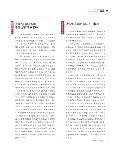 为有效破解小区治理难题,今年,德阳市罗江 兴领域突出问题,围绕重点工作落实、特色项目推