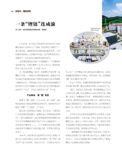 限公司入驻射洪锂业,实现了射洪锂盐厂由“国有”到 目 50 个,已成为川渝地区最大的锂电材料生产基地,