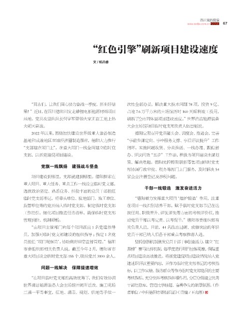 临时党支部书记,将牵头单位、驻地部门、施工单位、 “德阳着力发挥重大项目‘熔炉锻造’作用,注重
