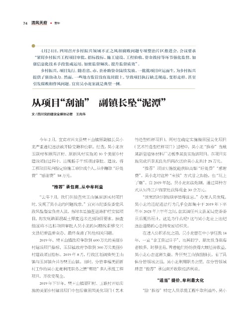 村建设项目指标。2019 年 8 月,行政区划调整僰王山 吴小龙心态逐渐失衡。升任僰王山镇副镇长,有了具
