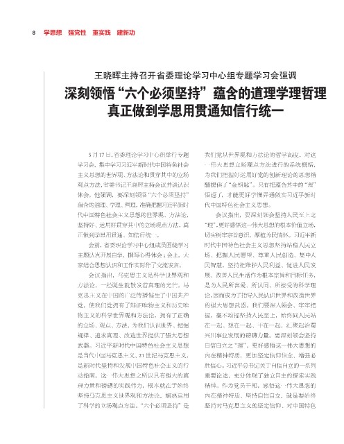 了科学的立场观点方法。“六个必须坚持”是 坚持对马克思主义的坚定信仰、对中国特色