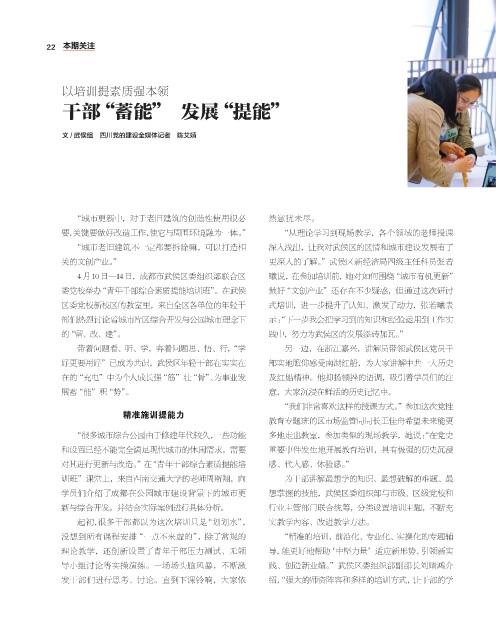 4月 10 日—14 日,成都市武侯区委组织部联合区 曦说,在参加培训前,她对如何围绕“城市有机更新”