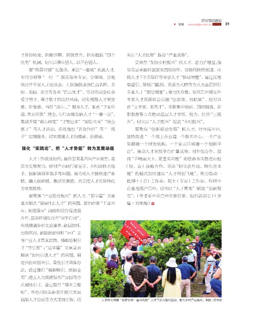 高端人才论坛等方式柔性引智,切 巴中市开展“筑梦乡村·奋斗有我”人才下乡万里行活动,助力乡村产业振兴。供图 / 巴中组