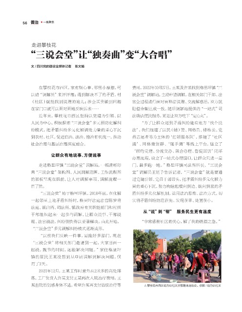 以请“调解员”来评评理;遇到解决不了的矛盾,村 说会堂”调解站,主动申请调解,在相关部门干部、法
