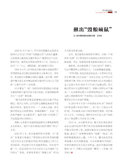 2021 年 1 月,袁光 毅 利用职务 便 利,为“朋 检查,查处了一批靠粮吃粮的“硕鼠”“蛀虫”,持