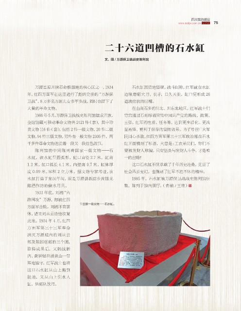 万源是原川陕革命根据地的核心区之一,1934 石水缸因质地坚硬,战斗间隙,红军就在水缸